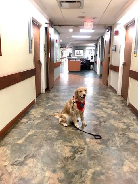 Denver, Daisy's daughter, officially began the path of therapy work in February of 2017. On her first day, she met a patient who was crying. Denver turned her around by just being her sweet little self. Denver is a favorite of the patients! What's not to love?