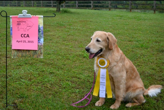 Daisy earned her CCA (Certificate of Conformation Assessment) in April of 2015 at an event held by the Sandlapper Golden Retriever Club in Gray Court, South Carolina. One of the judges remarked that Daisy has the look of the old fashioned Golden Retriever, which is what made us, at Camelot House, fall in love with the breed from the start.