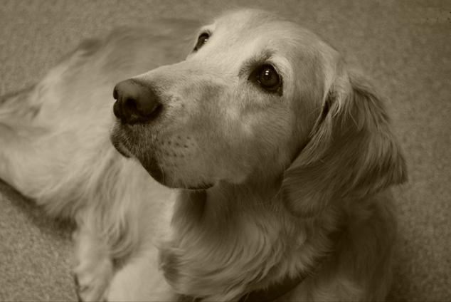 Daisy is a confident, friendly girl with a beautiful coat of medium gold who has kind, expressive eyes and an eagerness-to-please type of personality. She is basically a good, all around, happy, energetic girl who not only loves to be around people, but also enjoys swimming and playing fetch. Other favorite activities of hers include walks, car rides and social trips out to places in public. Most important, she is a well-loved family pet and is very much a part of our household where she is at her happiest. Daisy's height at the withers is 22 1/2 inches and she weighs 70 lbs.